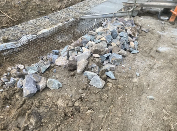 Dalam pengamatan teknis terhadap material di lokasi, ditemukan tumpukan batu dengan ukuran yang tidak seragam. Padahal, standar teknis bronjong mensyaratkan batu pecah atau batu kali dengan ukuran 15-25 cm agar terkunci rapat dalam anyaman kawat. Namun, fakta di lapangan justru memperlihatkan keberadaan batu berukuran kecil menyerupai split.